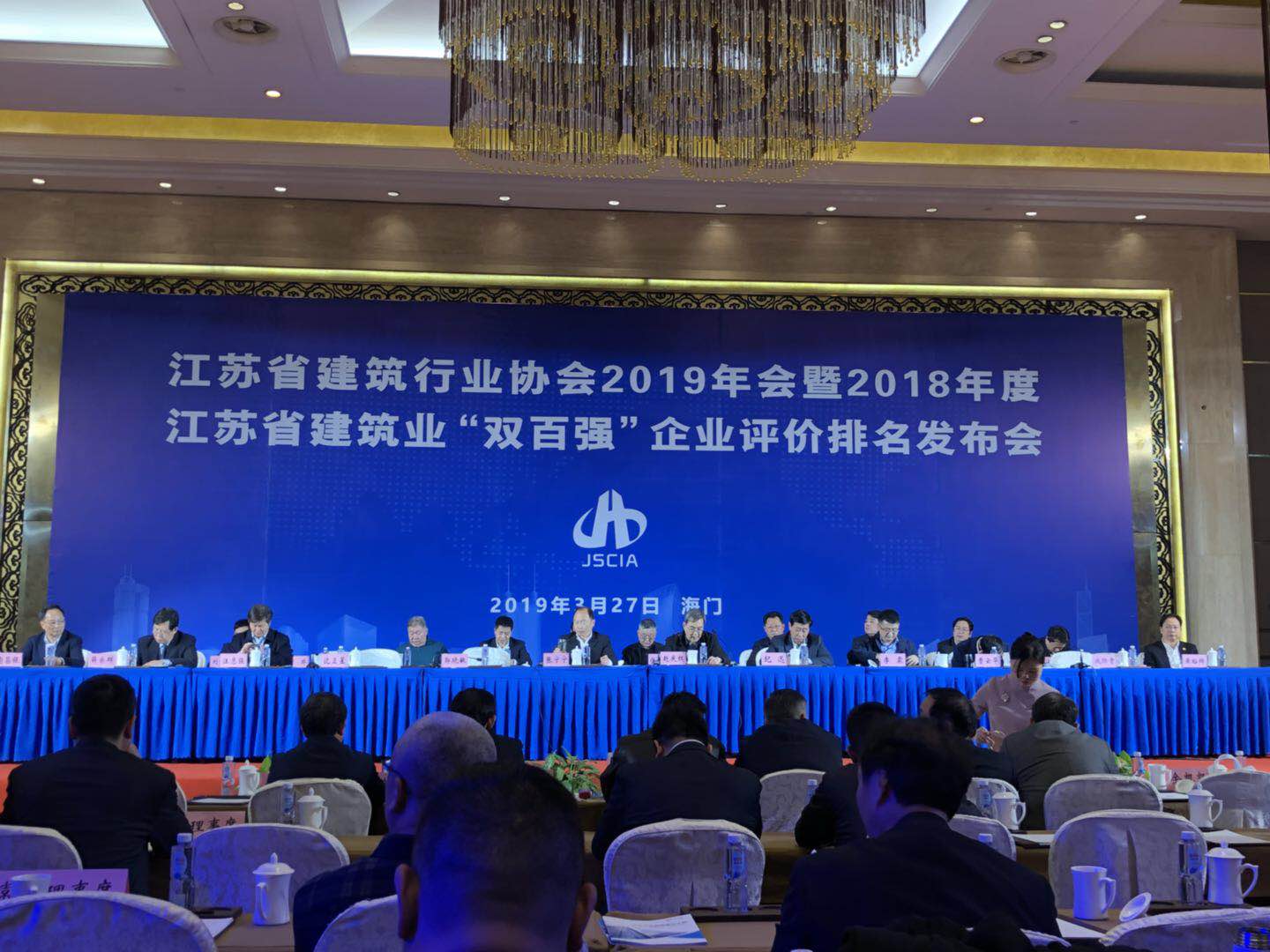 3月26-27日,江蘇省建筑行業(yè)協(xié)會第七屆三次常務(wù)理事會暨2018年度江蘇省建筑業(yè)“雙百強”企業(yè)評價排名發(fā)布會在海門市召開。江蘇省住建廳副廳長趙慶紅,省建筑行業(yè)協(xié)會會長張寧寧、常務(wù)副會長紀迅,來自全省各市縣協(xié)會負責人、各建筑業(yè)重點企業(yè)負責人共500余人出席會議。集團董事長管民良作為常務(wù)理事參會并接受表彰。