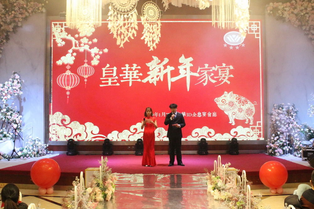 1月27日中午,由集團(tuán)皇華國際大酒店主辦的“夢想起航再創(chuàng)輝煌”新年家宴在宴會大廳隆重舉行。集團(tuán)董事長管民良、總經(jīng)理管民祥、副總經(jīng)理周耀庭、黃益寶、財務(wù)總監(jiān)郭正基、皇華國際大酒店董事長王衛(wèi)紅、總經(jīng)理夏曉春、建宇機關(guān)員工及皇華的全體員工們參加了此次盛宴。