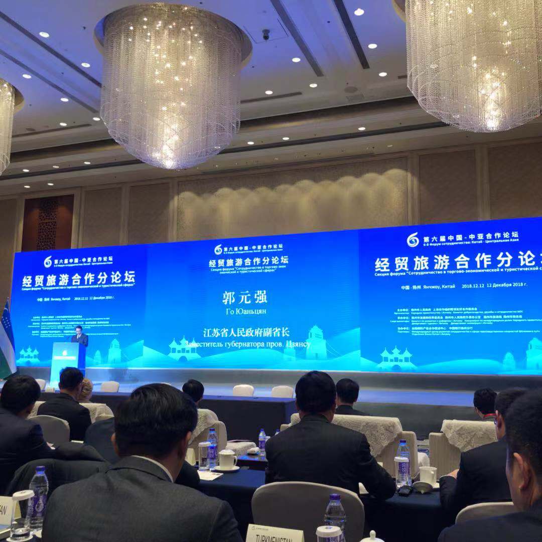 郭元強副省長致詞,近年來,在習(xí)近平主席和中亞各國領(lǐng)導(dǎo)人的戰(zhàn)略引領(lǐng)和親自推動下,中國江蘇同中亞各國關(guān)系收獲豐碩成果,當(dāng)前中國同中亞國家共建“一帶一路”合作全面走向深入,已經(jīng)為雙方合作的主線,江蘇將繼續(xù)本著共商共建共享原則和平等相待、互利共贏的精神,加強同中亞國家發(fā)展戰(zhàn)略對接,不斷深化在建筑業(yè)、經(jīng)貿(mào)、投資、金融等領(lǐng)域的合作。夏心旻市長宣布揚州經(jīng)貿(mào)旅游倡議,陳揚副市長作了揚州經(jīng)貿(mào)推介。