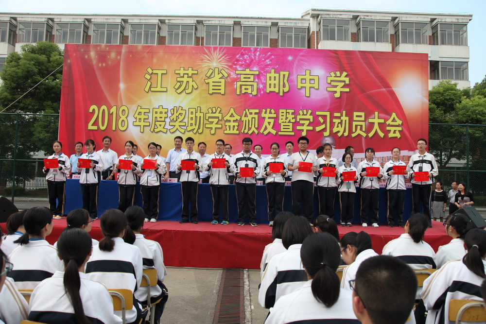 中秋前夕, 高郵中學(xué)隆重舉行2018年度獎助學(xué)金頒發(fā)暨學(xué)習(xí)動員大會。董事長管民良出席大會,向莘莘學(xué)子頒發(fā)了建宇皇華獎助學(xué)金。高郵中學(xué)校長、黨委書記黃仁云等全體校領(lǐng)導(dǎo)出席表彰大會。