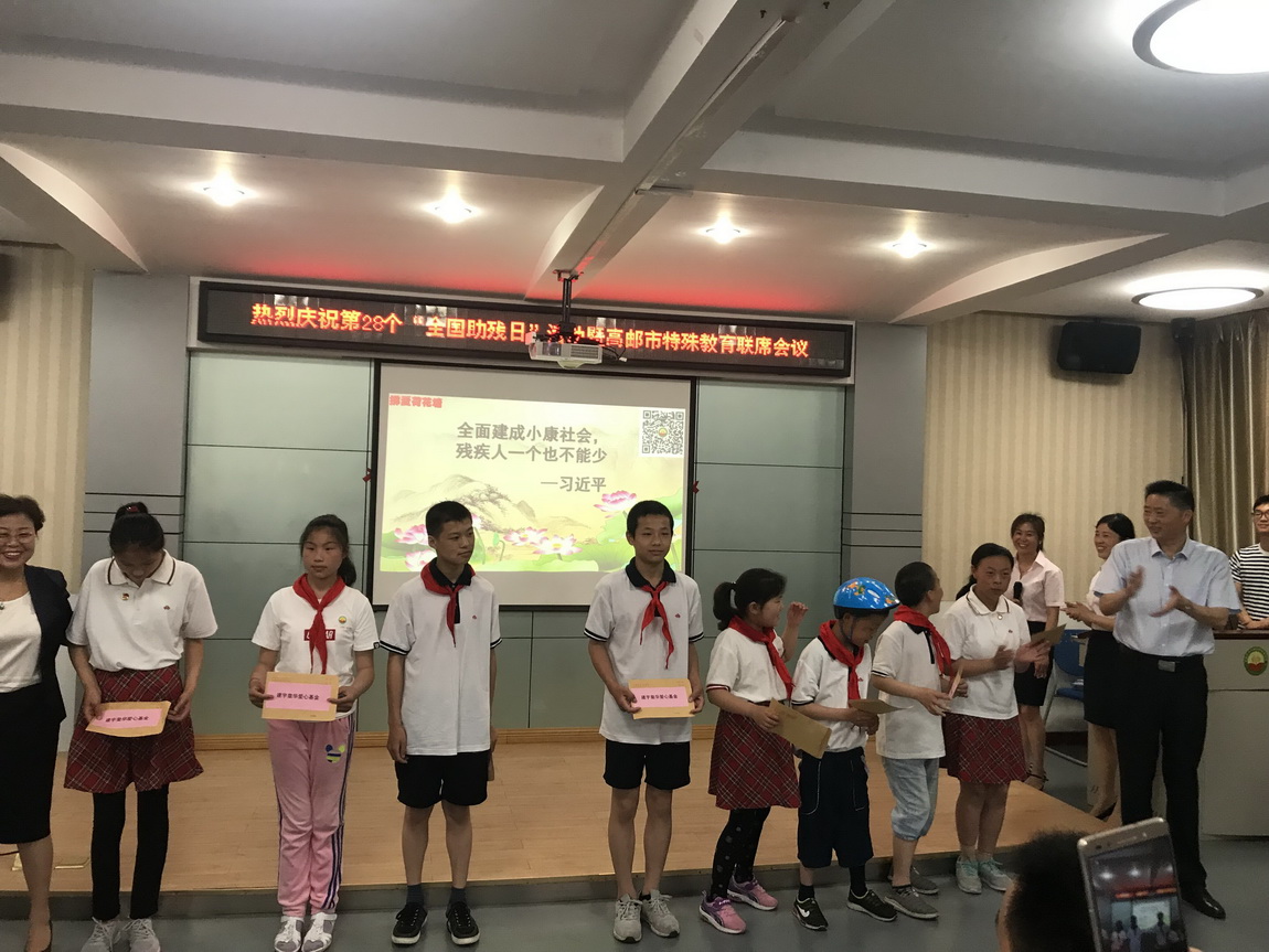 在第28個“全國助殘日”來臨之際,集團(tuán)董事長管民良及皇華國際大酒店董事長王衛(wèi)紅來到高郵市荷花塘特殊教育學(xué)校參加“建宇?皇華愛心基金”發(fā)放儀式,看望全體師生,并送上慰問金。市教育局局長陸鵬海、市殘聯(lián)、市民政局、市財政局、市人社局等相關(guān)部門領(lǐng)導(dǎo)出席活動。