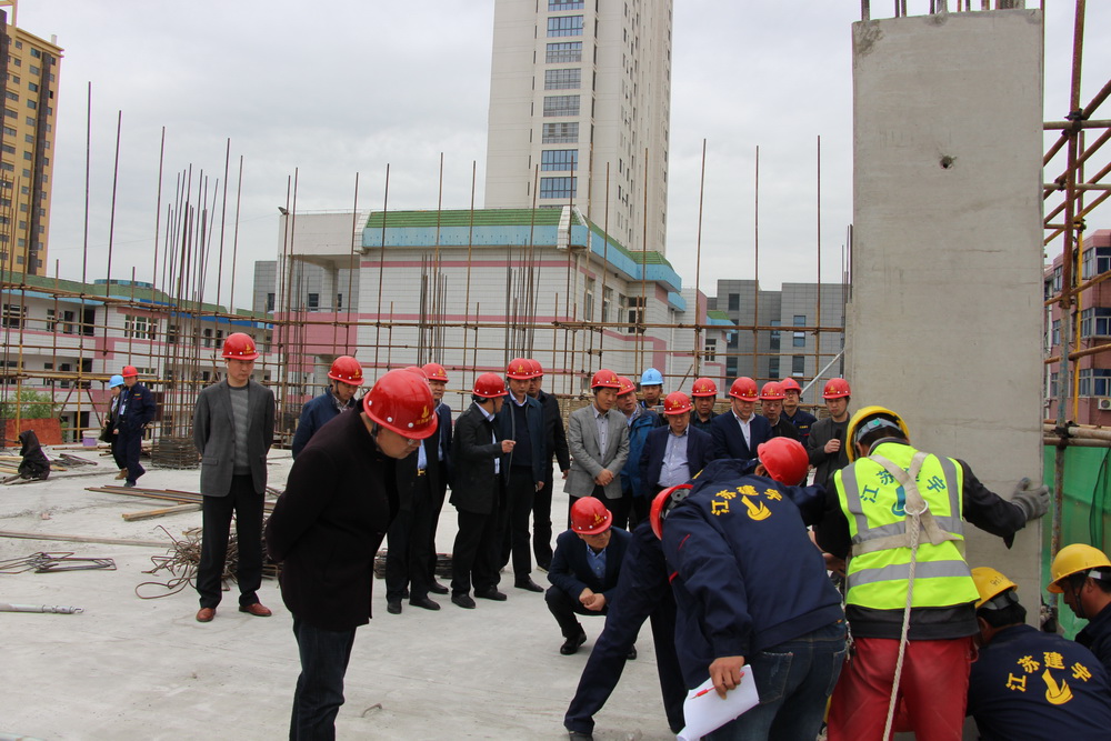 4月13日下午,高郵市副市長(zhǎng)李生率市建管局徐曉君局長(zhǎng)等相關(guān)部門領(lǐng)導(dǎo)一行15人蒞臨宿遷分公司,考察泗陽(yáng)縣實(shí)驗(yàn)初級(jí)中學(xué)工程,集團(tuán)公司管民良董事長(zhǎng)、管民祥總經(jīng)理、宿遷分公司湯真標(biāo)經(jīng)理等陪同視察。