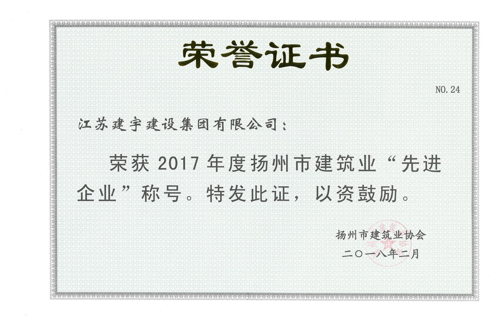 會議審議通過了揚州市建筑業(yè)協(xié)會《揚州市建筑業(yè)協(xié)會2017年工作報告》等有關(guān)報告,表彰并頒發(fā)了2017年度揚州市建筑業(yè)先進企業(yè)等獎項。集團公司榮獲2017年度“揚州市建筑業(yè)先進企業(yè)”,董事長管民良榮獲2017年度“揚州市建筑業(yè)優(yōu)秀企業(yè)家”,項目經(jīng)理周軍獲得“揚州市優(yōu)秀建造師”,三個項目獲得揚州市優(yōu)質(zhì)工程。