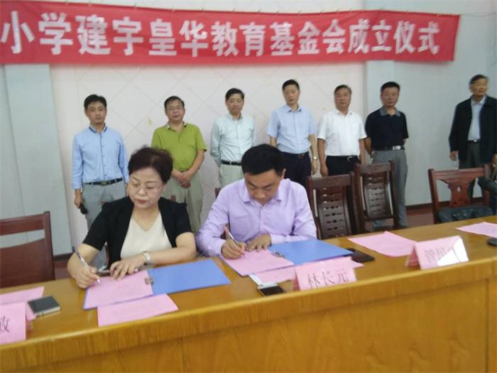 伯勤小學(xué)楊骎校長首先代表學(xué)校致歡迎辭,對建宇?皇華教育基金的成立表達了謝意和敬意。皇華國際大酒店王衛(wèi)紅董事長代表集團與伯勤小學(xué)楊骎校長簽署二十萬元基金捐贈協(xié)議。隨后伯勤小學(xué)教導(dǎo)主任張敏宣讀了《伯勤小學(xué)建宇?皇華教育基金會章程》,受助學(xué)生代表上臺發(fā)言,感謝學(xué)校和建宇集團的關(guān)心和培養(yǎng)。