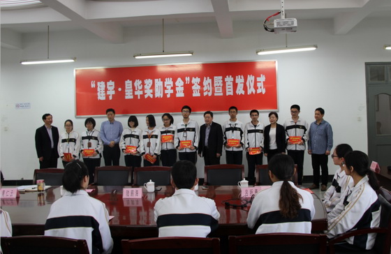 郵中黃仁云校長首先代表學校發(fā)表了熱情洋溢的講話,對建宇?皇華獎助學金的捐贈表達了謝意和敬意,隨后皇華國際大酒店王衛(wèi)紅董事長代表集團與郵中黃仁云校長簽署五十萬元捐贈協(xié)議。董事長管民良及與會領導共同為學生發(fā)放了獎助學金,首批20多名郵中學子現(xiàn)場接受獎勵和資助。受助學生陸佳作為學生代表發(fā)言,感謝學校和建宇集團的關心和培養(yǎng)。