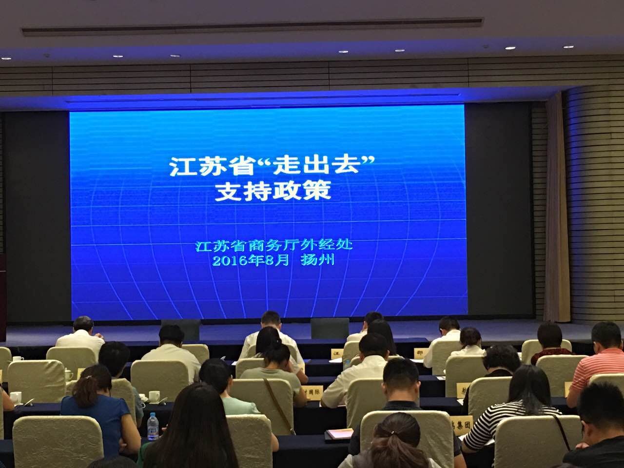 近日,由省商務(wù)廳組織中國出口信用保險(xiǎn)公司江蘇分公司、省金融辦、省財(cái)政廳、省建行共同舉辦主題為《發(fā)揮信保作用 服務(wù)“一帶一路”》的“走出去”全省首場(chǎng)政策發(fā)布會(huì)在揚(yáng)州迎賓館召開。全省60多家優(yōu)質(zhì)外經(jīng)企業(yè)參加,我公司作為新批外經(jīng)資質(zhì)企業(yè)參加此次會(huì)議。