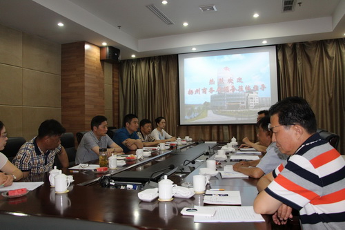 7月13日上午,揚州市商務局外經(jīng)處潘陽春處長、王棟梁副處長在高郵市商務局張鋒局長、盧安偉副局長、邱昆科長的陪同下,來我公司考察。董事長管民良、副總經(jīng)理黃益寶等接待了考察團一行。