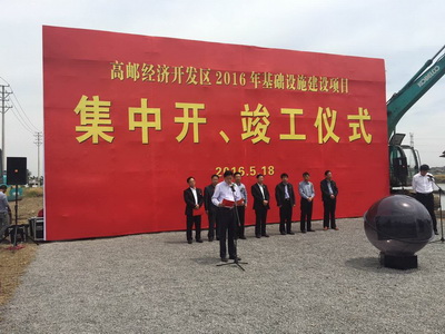 開工儀式上,集團董事長管民良代表開發(fā)區(qū)九期工程施工單位致辭,他首先對高郵市、開發(fā)區(qū)政府對該項目前期工作支持表示感謝,集團將抽調精兵強將組成高效的項目管理團隊,精心組織施工方案,以多年來與相關單位合作經驗為基礎,嚴格抓好施工進度、質量、安全管理和文明施工等各項工作,打造優(yōu)質工程,回饋高郵市各級領導長期以來的關心和支持。