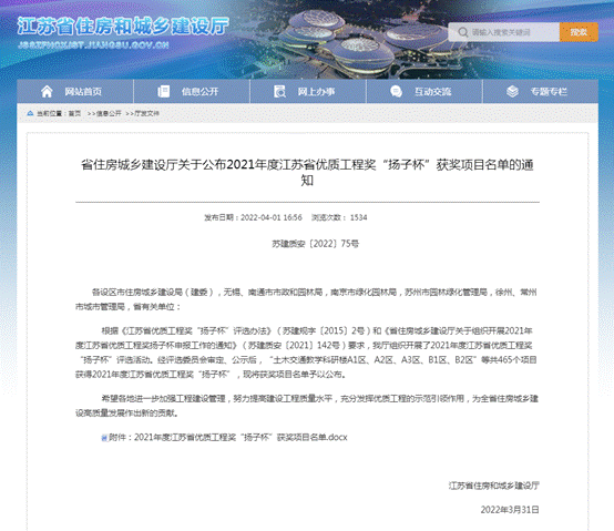 日前,省住房城鄉(xiāng)建設(shè)廳公布了2021年江蘇省優(yōu)質(zhì)工程獎“揚(yáng)子杯”獲獎項目名單,集團(tuán)南京分公司承建的旭日愛上城2區(qū)項目和高郵分公司承建的汪曾祺文化特色街區(qū)項目名列其中,為集團(tuán)再獲殊榮!