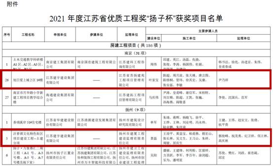 江蘇省優(yōu)質(zhì)工程獎“揚(yáng)子杯”是江蘇省建筑工程質(zhì)量最高榮譽(yù)獎,代表全省當(dāng)前工程建設(shè)質(zhì)量的最高水平,每年評審一次,標(biāo)準(zhǔn)要求高,數(shù)量控制極其嚴(yán)格。全省僅186項房建項目獲得“揚(yáng)子杯”,集團(tuán)同時獲評二項工程,位列高郵首位,揚(yáng)州前列。
