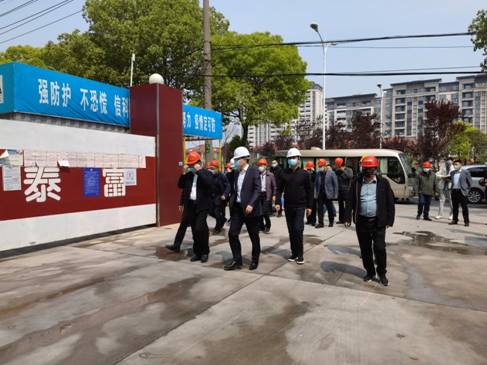 在視察中,集團(tuán)副總金大德向潘常委一行匯報(bào)了工程概況、疫情常態(tài)化防控、建設(shè)進(jìn)度、質(zhì)安管理、現(xiàn)場(chǎng)文明施工、揚(yáng)塵管理等情況。市領(lǐng)導(dǎo)一行對(duì)現(xiàn)場(chǎng)各項(xiàng)工作給予高度肯定。