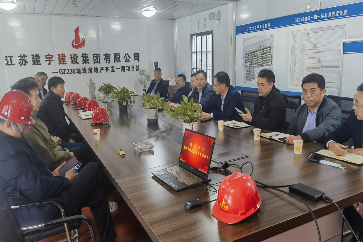 在項(xiàng)目部會(huì)議室,考察組一行對(duì)集團(tuán)在揚(yáng)項(xiàng)目經(jīng)營(yíng)情況進(jìn)行了交流座談。集團(tuán)副總金大德介紹了揚(yáng)州分公司的基本情況、在建項(xiàng)目規(guī)模、目前施工狀況、資金回籠、生產(chǎn)經(jīng)營(yíng)及項(xiàng)目稅務(wù)申報(bào)等情況。項(xiàng)目負(fù)責(zé)人柏甫彥針對(duì)錦麟世紀(jì)項(xiàng)目概況、質(zhì)量安全管理、疫情防控及項(xiàng)目所獲榮譽(yù)進(jìn)行了詳細(xì)匯報(bào)。