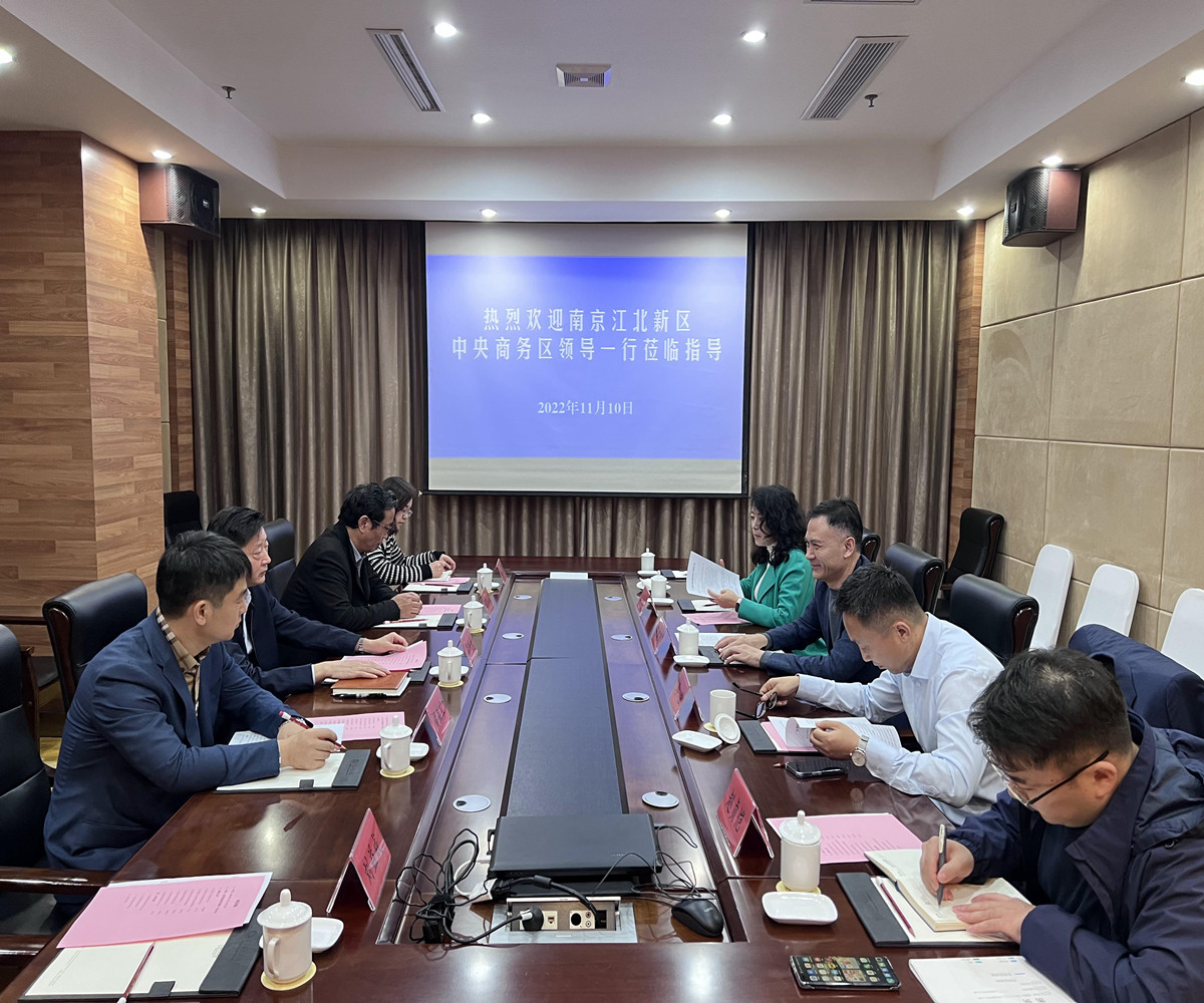 11月10日,南京江北新區(qū)中央商務區(qū)管辦主任陳建鵬、副主任李強一行蒞臨集團考察調研。集團董事長管民良、副總經(jīng)理張幫華、副總經(jīng)理黃益寶等接待了考察團一行。
