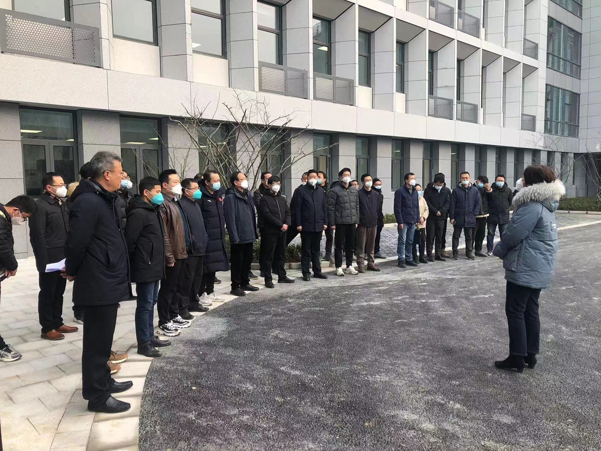 ?;ㄌ幯λ亓痔庨L在基礎(chǔ)樓門前主持驗收會,宣布了參驗人員和驗收程序,在總結(jié)環(huán)節(jié),對項目質(zhì)量安全進度給予了綜合好評,對集團精心施工、抗擊疫情、如期交工表示感謝!