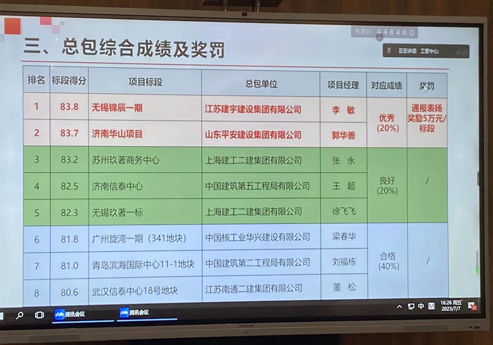 錦辰項目在中信泰富地產(chǎn)全國評比,多次取得較好成績,受到了主管部門、甲方、第三方咨詢機(jī)構(gòu)的好評。本次2023年第二輪工程評估中榮獲第一名的好成績,并獲獎勵5萬元,又一次證明集團(tuán)綜合實力和項目管理能力。