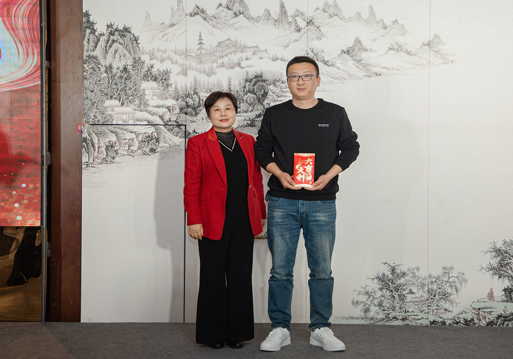 董事長(zhǎng)管民良攜手皇華國(guó)際大酒店董事長(zhǎng)王衛(wèi)紅共同為晚會(huì)優(yōu)秀節(jié)目表演者現(xiàn)場(chǎng)頒獎(jiǎng)。