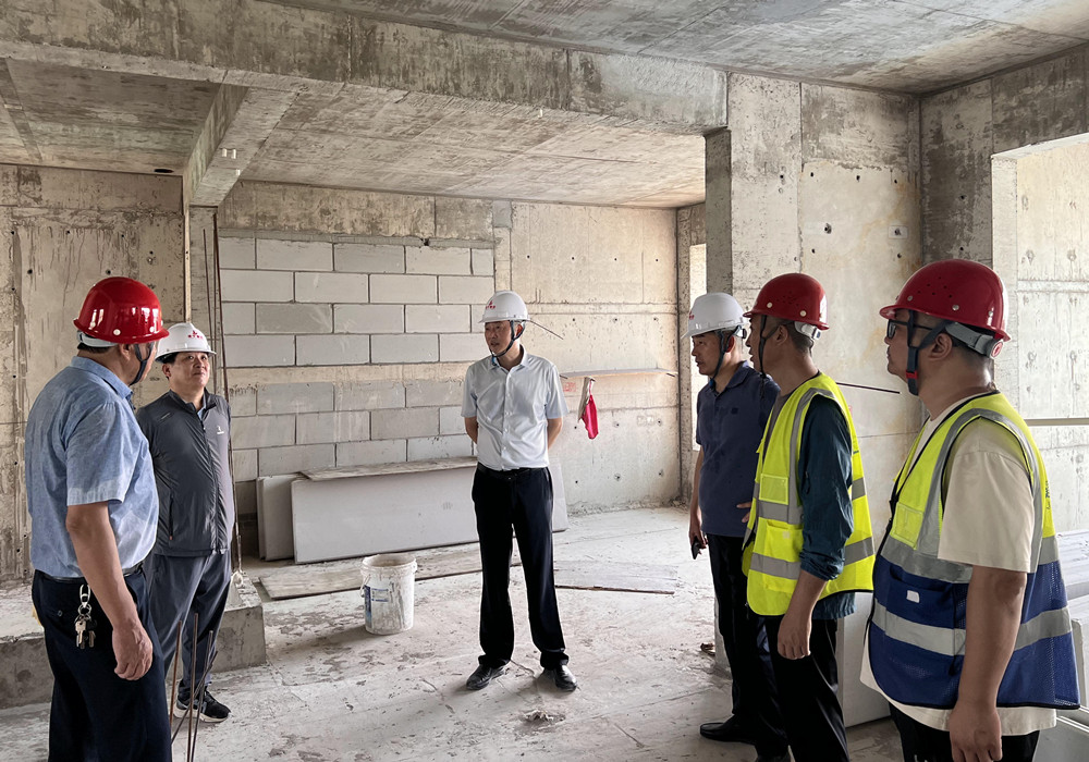 8月7日清晨,董事長管民良率副總經(jīng)理張?zhí)焯摇⒔鸫蟮孪群髞淼綋P州公司承建的玖曲風(fēng)荷和錦麟世紀(jì)二期項目現(xiàn)場,對實體質(zhì)量、安全防護(hù)、道路維護(hù)、圍檔提升、防署降溫應(yīng)急措施一一檢查和詢問,提出整改和完善要求。