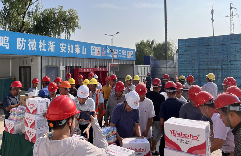 接著,董事長管民良等集團(tuán)高管將藿香正氣水、毛巾、花露水、飲用水等防暑降溫物品分別送到一線施工人員手中,向一線員工傳達(dá)集團(tuán)的關(guān)心問候,感謝他們在高溫下堅守崗位、奉獻(xiàn)付出,囑咐大家做好高溫防護(hù)措施,注重勞逸結(jié)合,保障身體健康。