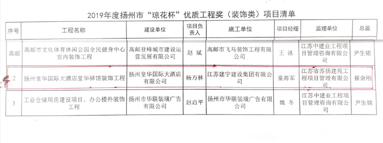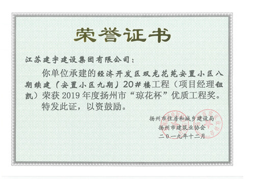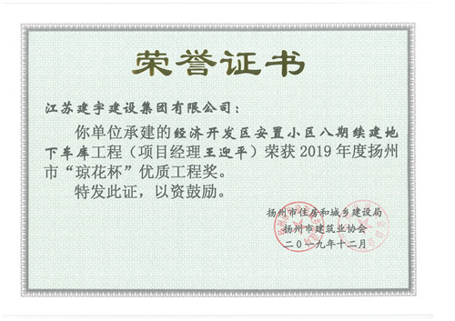 日前,2019年度揚州市優(yōu)質工程獎項揭曉,集團高郵分公司承建的“經濟開發(fā)區(qū)雙龍花苑安置小區(qū)八期續(xù)建地下車庫”、“經濟開發(fā)區(qū)雙龍花苑安置小區(qū)九期”和裝飾分公司承建的“揚州皇華國際大酒店皇華驛館裝飾工程”等三個項目,被揚州市住房和城鄉(xiāng)建設局表彰為揚州市“瓊花杯”優(yōu)質工程獎。
