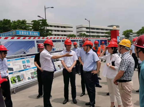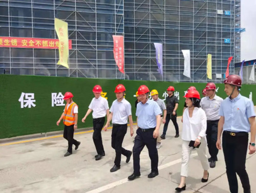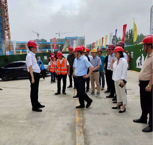 6月28日上午,南京市委常委、江北新區(qū)黨工委專職副書記羅群視察集團承建的國際化名醫(yī)中心項目,并督導(dǎo)安全生產(chǎn)工作。新區(qū)中央商務(wù)區(qū)主任陳建鵬、新區(qū)建設(shè)與交通局長許蕾等部門負責(zé)人隨同檢查,集團董事長管民良、副總經(jīng)理張幫華等在項目現(xiàn)場陪同。