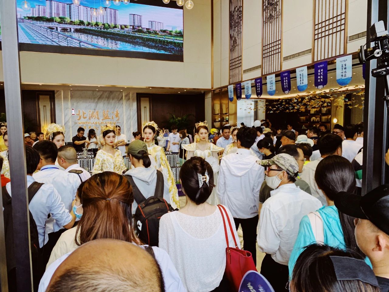 盡管當(dāng)天的最高氣溫有36℃,但現(xiàn)場氛圍火爆異常,北湖藍(lán)灣的營銷中心內(nèi)外擠滿了前來看房的市民,公開儀式開始,董事長管民良攜手恒通集團(tuán)董事長陳有川等領(lǐng)導(dǎo)共同為營銷中心啟幕,隨著營銷中心大門徐徐打開,迫不及待的買房人如同潮水般涌入銷售大廳。